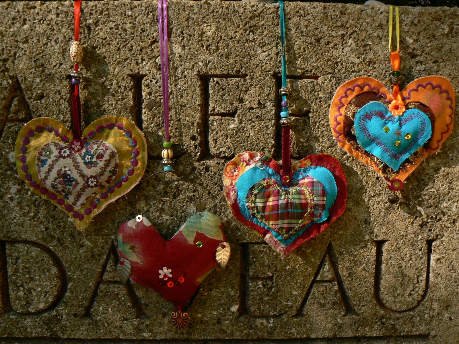 Tissu, Pochettes, Pâte Fimo, Mosaïques, Métal, Tableaux, Broches, Céramiques, Peintures, Perles.